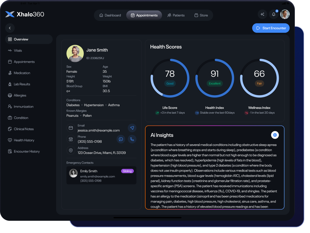 XHalo360 is a state-of-the-art electronic medical record platform designed for the next era of longevity and precision wellness.