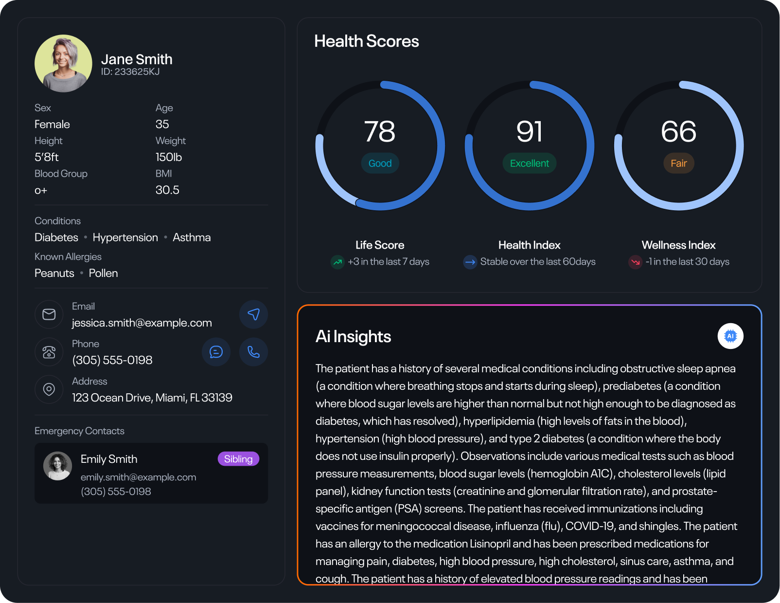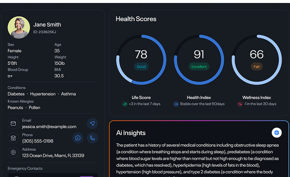 It unifies every aspect of a person’s health—clinical data, lifestyle insights, and longevity biomarkers—into one intelligent 360° ecosystem for both providers and patients.